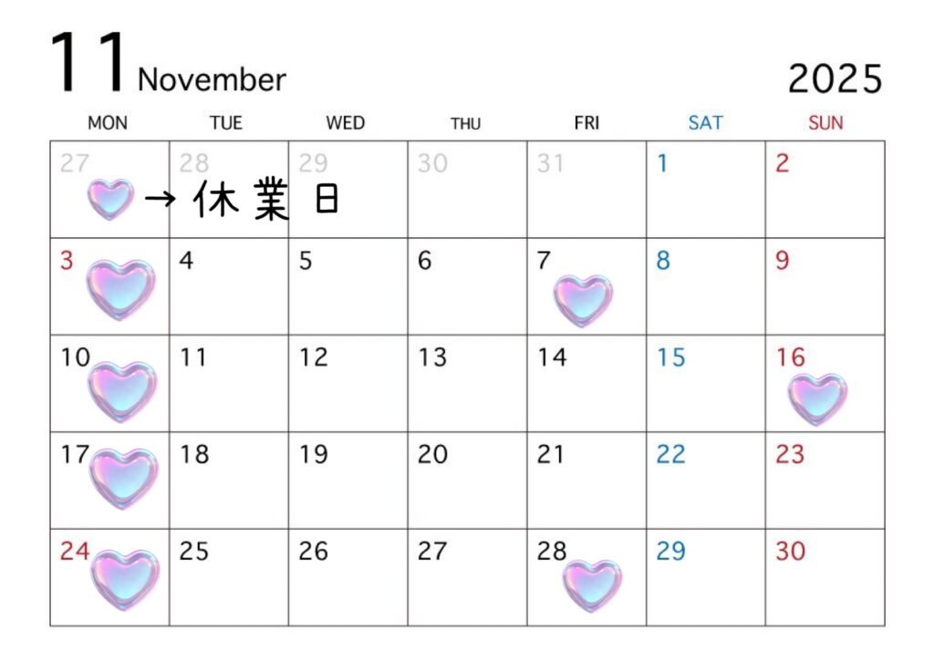 こんにちは!10月もたくさんのご来店有り難うございました!(*≧∀≦*)11月もご予約お待ちしております🙇🏼♀️ɲ